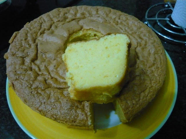 Numa forma untada, deite a massa do chiffon e leve ao forno a 170º por cerca de 45 min.